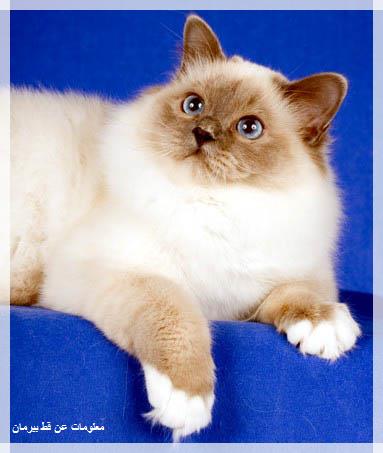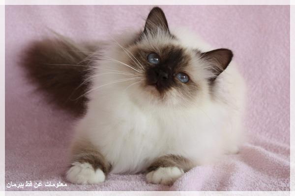 القط بيرمان والمعروف أيضا باسم القط المقدس والقط بورما . يتميز القط بيرمان بمعطفه ذو اللون الأبيض والبني مع العيون الزرقاء الجميلة . لبيرمان هو سلالة ذكية ولطيفة من القطط والتي تحب اللعب مع البشر . يعتبر القط المقدس بورما من القطط الطويلة والتي يمكن الحصول عليها بحجم كبير جدا . الذكور عادة ما يكونوا أكبر من الإناث . إذا كنت ترغب في الحصول على قط غير عدواني ، ومحب للناس ، فإن القط بيرمان هو القط المثالي ذو الشعر الناعم مع أربعة أقدام بيضاء نقية وليس له شعر سميك . بشكل عام ، القط بيرمان من القطط المحبة للعب مع جميع أنواع الألعاب والذي يرغب في مشاركة أي “عمل” . بيرمان هو القط المتوازن مع جسمه الممدود والممتلئ . يشتق اسم سلالة هذا القط من Birmanie . نشأ القط بيرمان للمرة الأولى في فرنسا من قبل القط نادي دو فرانس في عام 1925 ، ثم في انكلترا من قبل القط فانسي (GCCF) في عام 1966 وفي الولايات المتحدة الأمريكية من قبل جمعية مربو القطط (CFA) في عام 1967 .